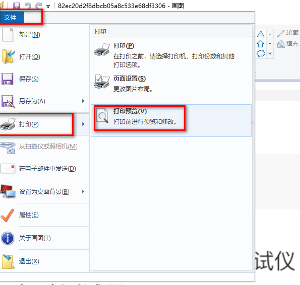 2、在画图中打开 文件 -> 打印 ->打印预览;