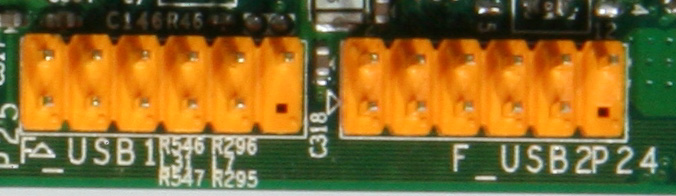 这是一个电脑前置USB的所有接线,还有一个USB跟上面的类同,只是将USB数据正、负线的名字中的数字加1,以示与第一个USB接口的区别。