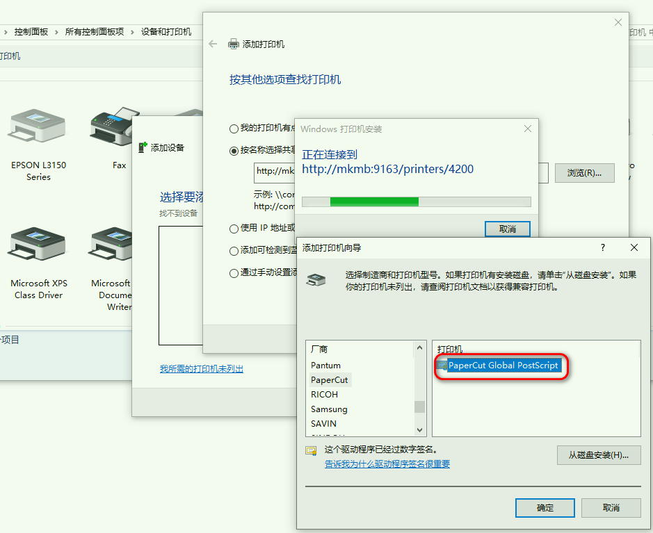 驱动名称:PaperCut Global PostScript