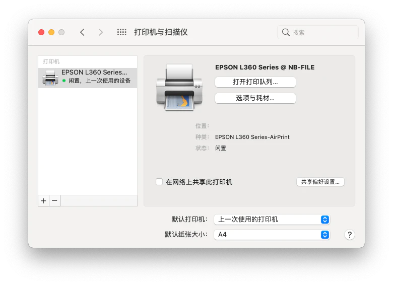 之后你就可以在「打印机和扫描仪」中看到这个 AirPrint 打印机的状态了,打开一篇文档然后尝试打印吧。