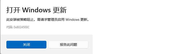 如下图,安装Microsoft store中的UWP应用时,报错,提示:“此安装被策略阻止。需请求管理员启用 Windows 更新。