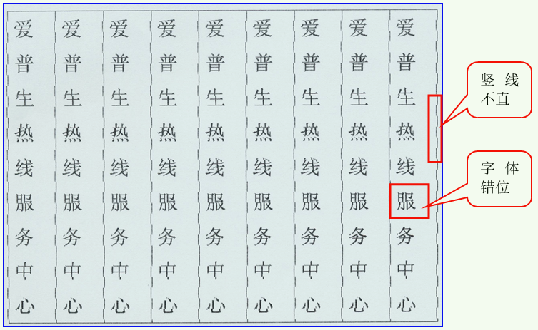 如果打印的文字出现左右错位,或打印的表格竖线不直,可以判定该打印机双向打印出现问题,打印头需要校准。