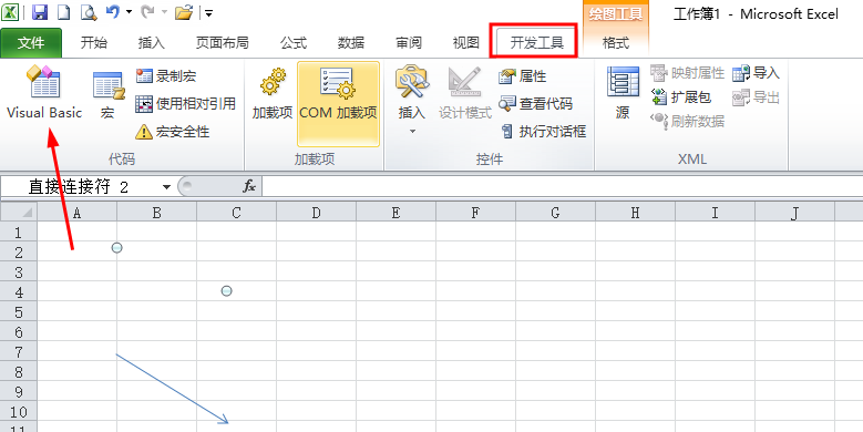 找到开发工具 -> Visual Basic 打开VBA窗口;